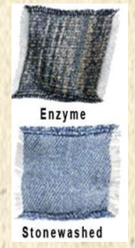 Its a special process done on denim wear for the used faded natural look on indigo/ sulphur based fabrics and its the replacement for sandblasting.
