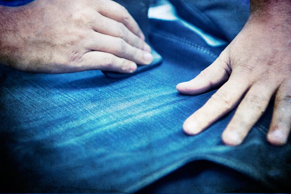 Its a process done to give aged look to the garment at the edges of pocket scoop,waist band and loop area.