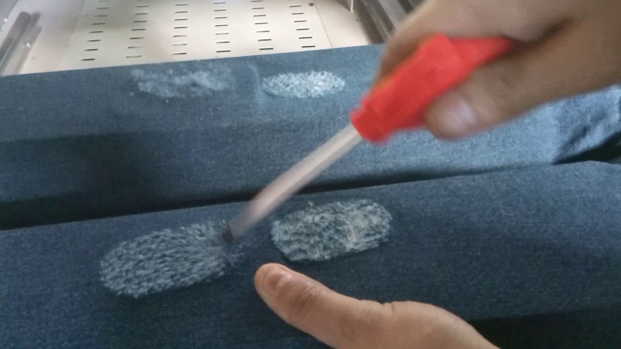 Its a unique hand crafted process done by using saltpaper on denim for the used wornout look Mould and ballon used to make this process.